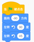 运行下列方向积木,角色最后面向()
