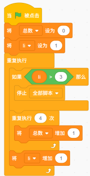 运行下列双重循环,变量【总数】为()
