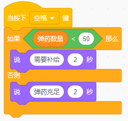 在Scratch中,以下哪个积木可以用来记录“弹药数量”这个变化的数字?